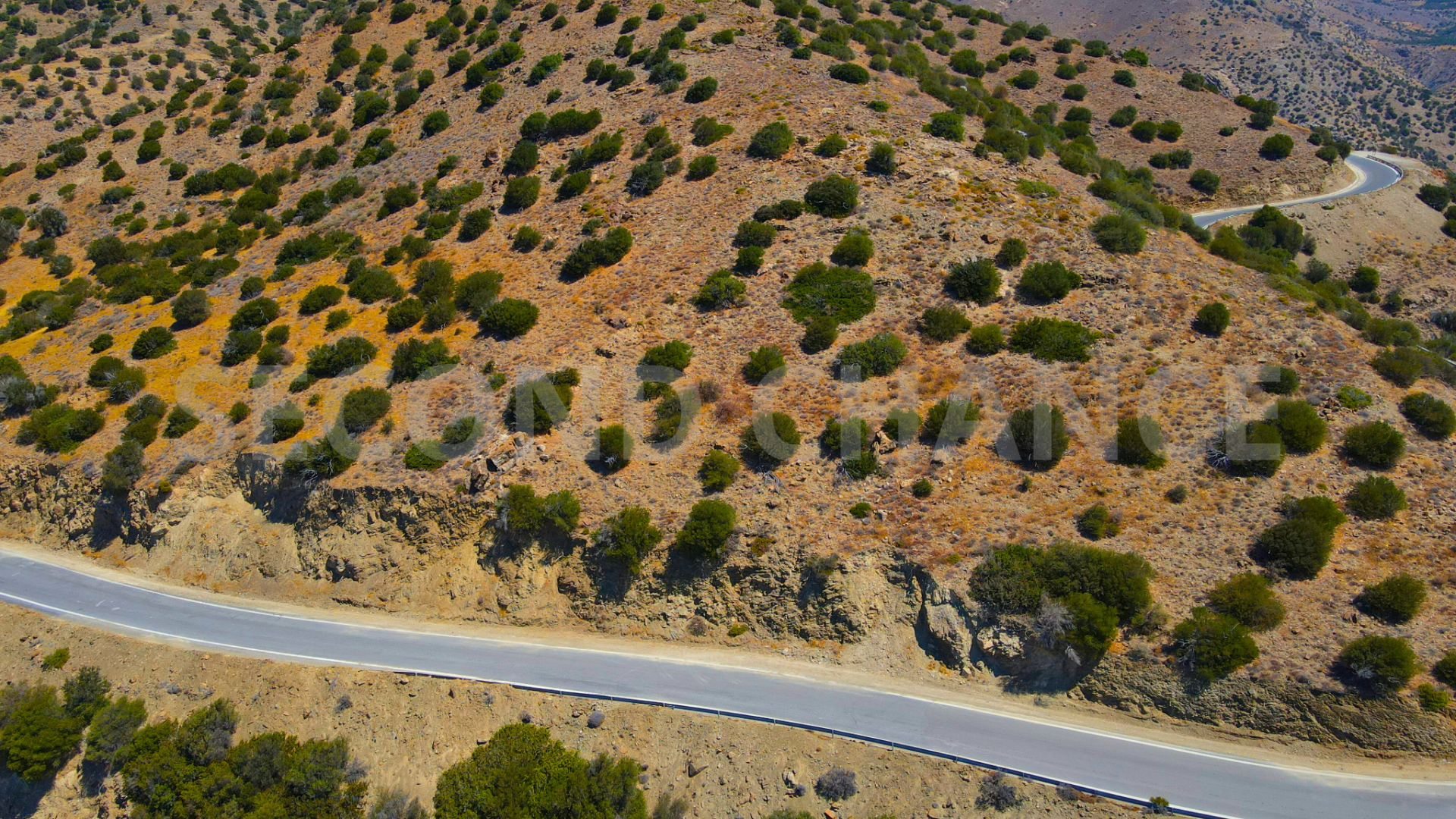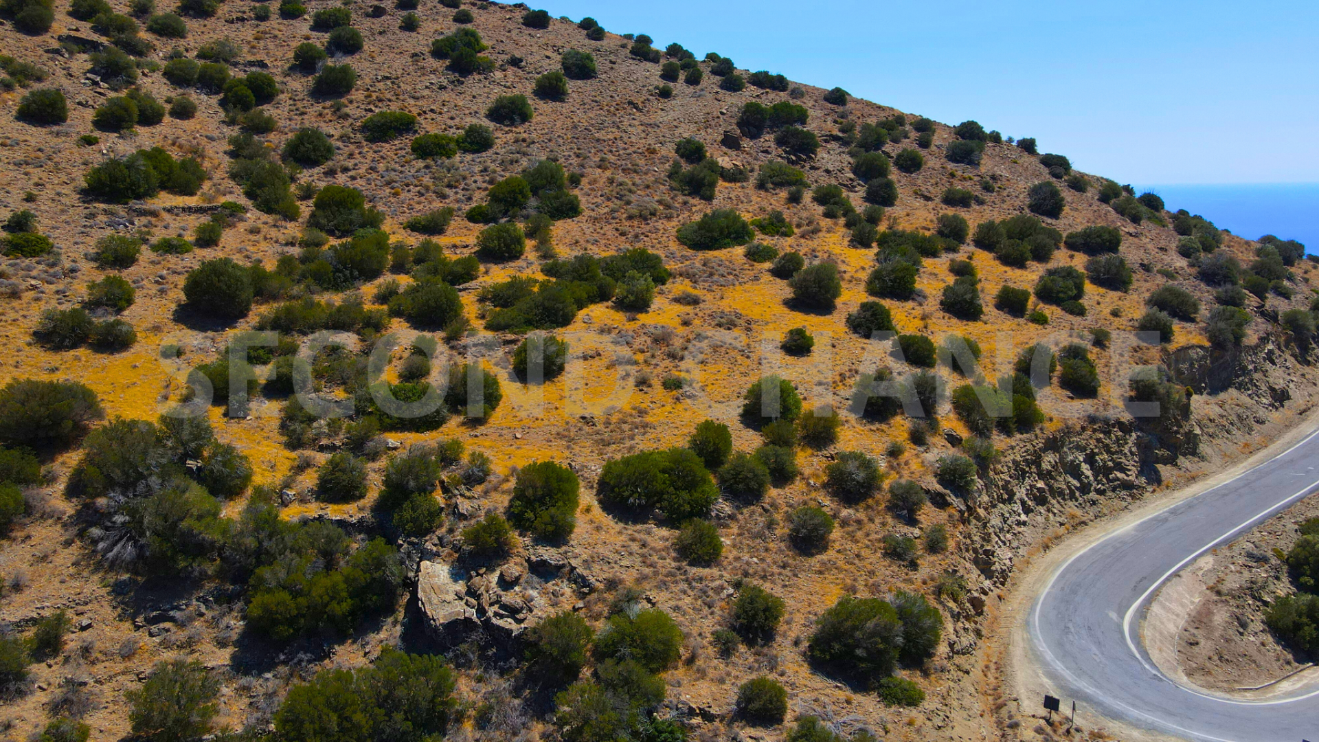 - Το οικόπεδο βρίσκεται σε πανοραμική θέση πάνω σε επαρχιακό δρόμο με πρόσοψη 47 μέτρα.